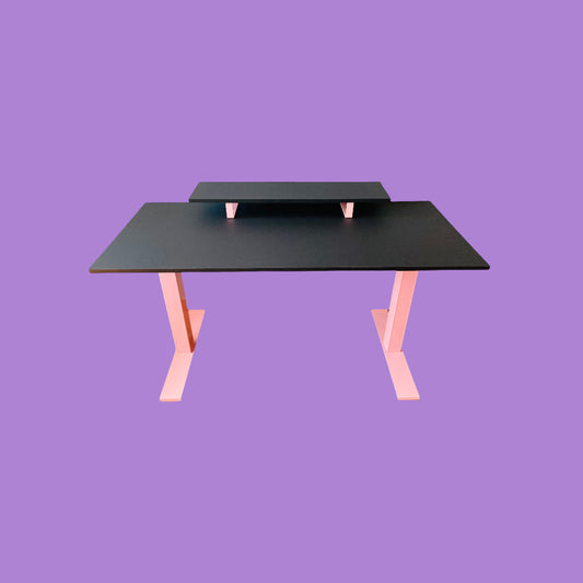 Black Pink Gaming Desk - Desk Frame, Cable Tray, Desk Top, Monitor Riser & Headphone Stand